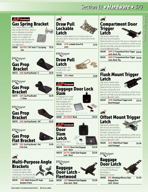502135 11695 Multi-Purpose 90° Angle $3.06 503130 E525 Fleetwood Style Baggage $11.09 Baggage Door