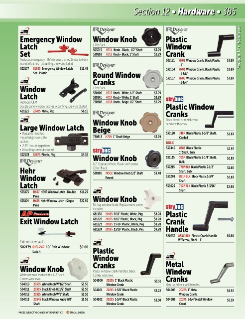 Latch 1-Per Pack. H711 Knob - Black, 1/2" Shaft $3.29 Window Section 12 • Hardware