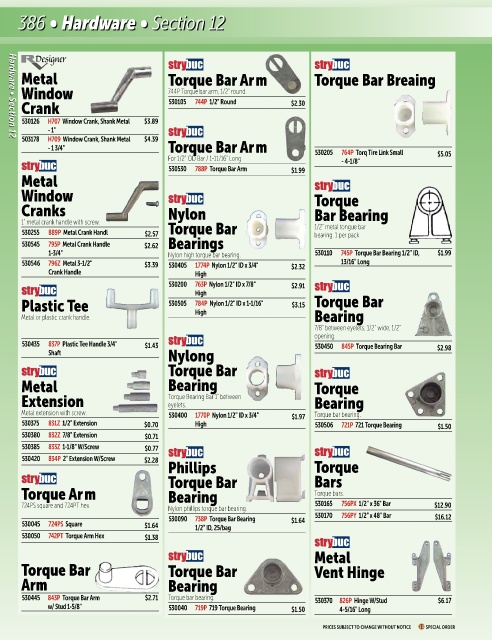 530090 738P Torque Bar Bearing $1.64 530170 756PY 1/2" x 48" Bar $16.12
