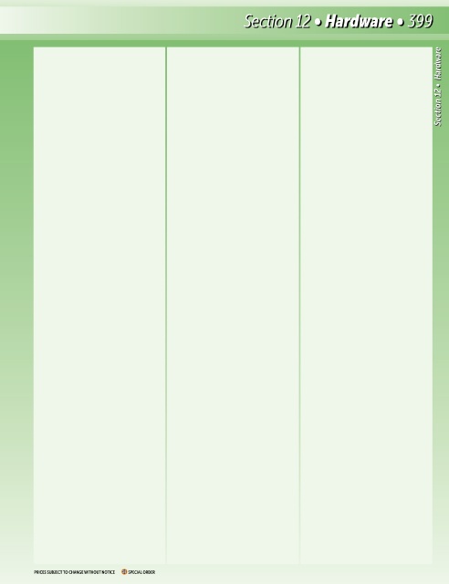 Section 12 • Hardware • 399 Section 12 • Hardware PRICES SUBJECT TO CHANGE WITHOUT NOTICE SPECIAL ORDER