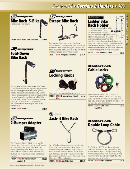 Adapter - 2" 740082 429756 Jack-It Bike Rack $229.95 702546 78DPF Double Loop Cable $11.39