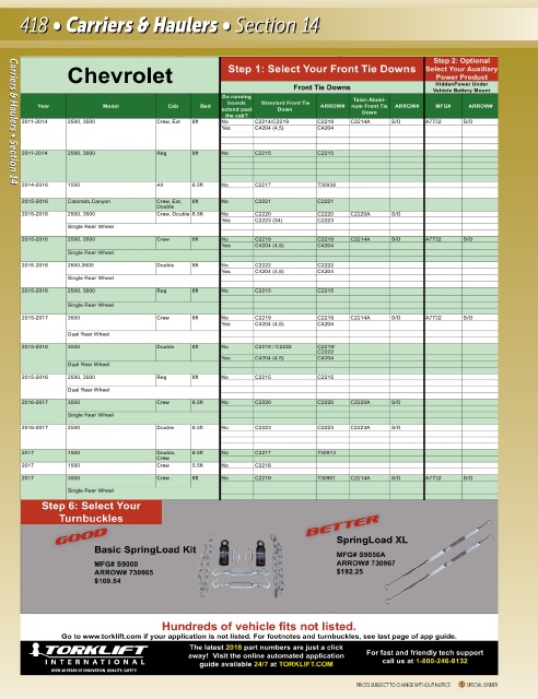 Go to www.torklift.com if your application is not listed. For footnotes and turnbuckles, see last page of app guide.