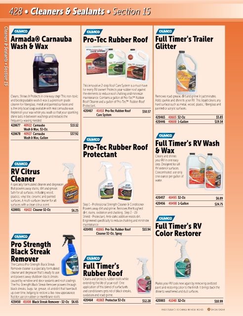 420450 41008 Black Streak Remover - 32-Oz $6.65 420464 41063 Protector 32-Oz $12.28 420003 41040 32-Oz $10.99
