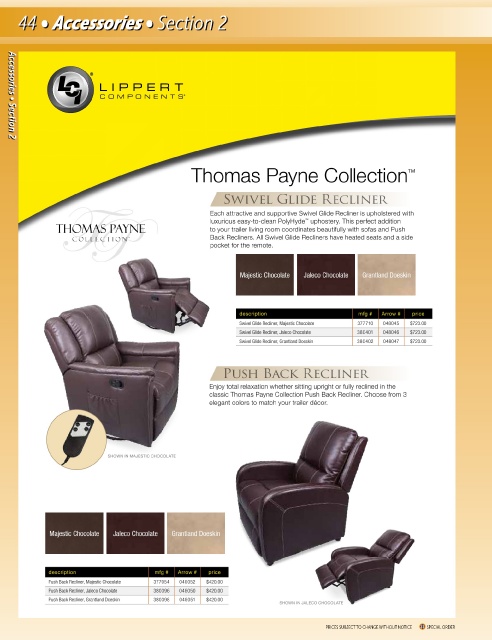 Push Back Recliner description mfg # Arrow # price description mfg # Arrow # price
