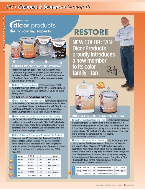 410175 RP-FRC-1 Part 2: Fiberglass $82.00 Dicor Elastomeric RV Roof Coating is formulated with 100% this biodegradable
