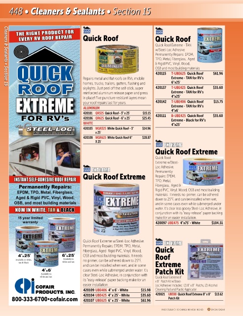 FOR RV’s 420101 QR325 Quick Roof - 3" x 25' $25.45 420111 4"x6' $35.60