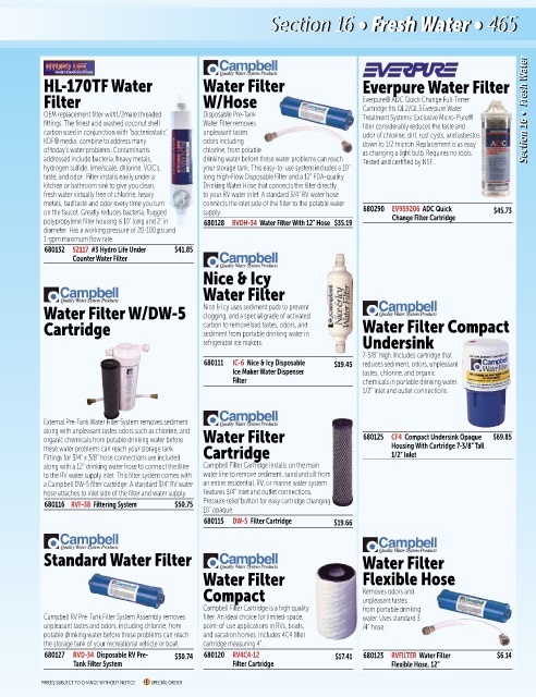 680127 RVD-34 Disposable RV Pre- $30.74 680120 RV4C4-12 $17.41 680123 RVFILTER Water Filter $6.14