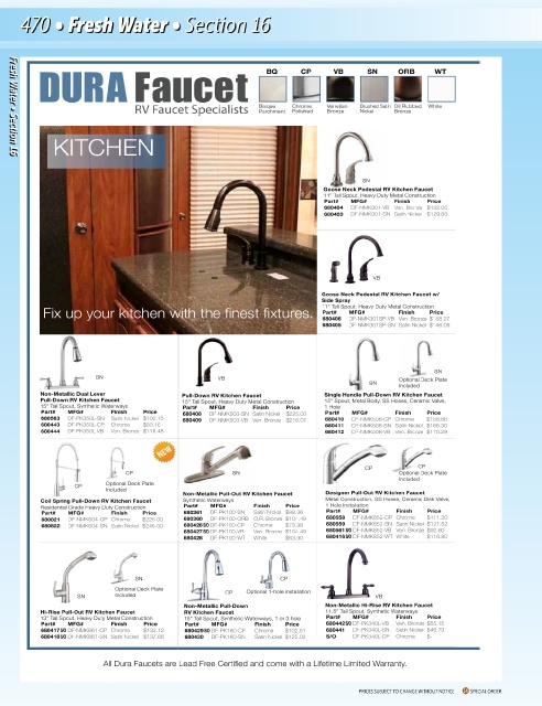 Lavatory Faucet Kitchen Faucet 8" J Single Lever RV Shower Faucet Lavatory Faucet 4" Bronze Nickel Nickel Bronze Bronze Section 16 • Fresh Water