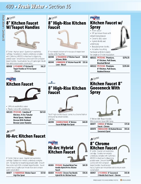 680877 U-YAB800RSAB Kitchen Faucet $57.60 681854 PF231302 Chrome Two Handle $59.26 680457 U-YCH800GS 8" Gooseneck $45.48