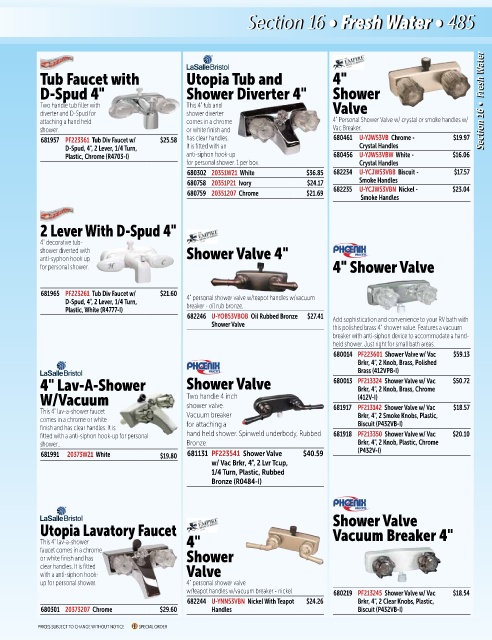 Two handle tub filler with This 4" tub and Valve Section 16 • Fresh Water