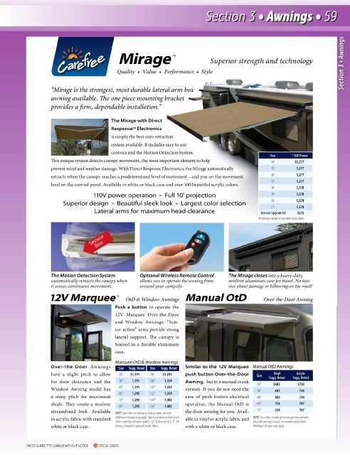 Over-the-Door Awnings Size Sugg. Retail Size Sugg. Retail Similar to the 12V Marquee Manual OtD Awnings