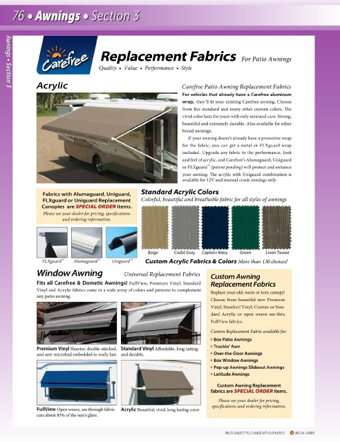 Fits all Carefree & Dometic Awnings! FullView, Premium Vinyl, Standard Replacement Fabrics