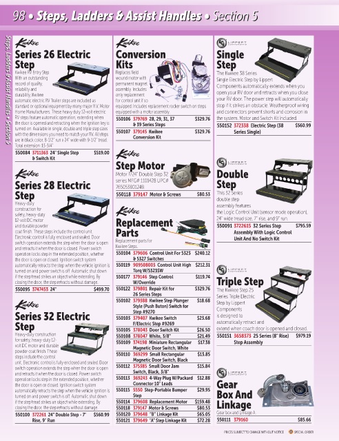 RV steps feature automatic operation, extending when 550106 379769 28, 29, 31, 37 $329.76 the system. Motor and Switch Kit included.