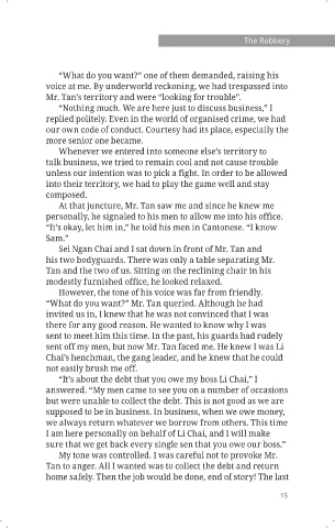 Sei Ngan Chai and I sat down in front of Mr. Tan and