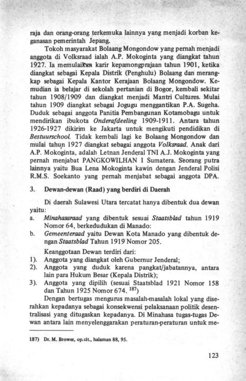 anggota di Volksraad ialah A.P. Mokoginta yang diangkat tahun