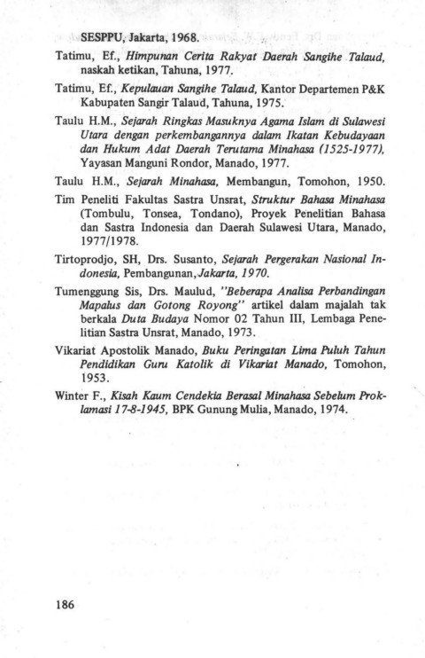 Tatimu, Ef., Himpuhan Cerita Rakyat -Daerah Sangihe . Talaud,