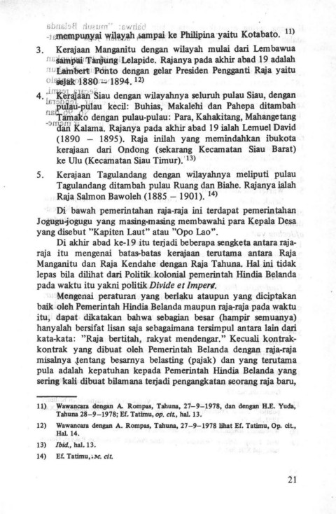 11) Wawancara dCngan A. Rompas, Tahuna, 27-9-1978, dan dengan H.E. Yuda,