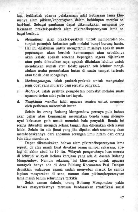 a    Momalinga  ialah  praktek-praktek  untuk  memperoleh pe-