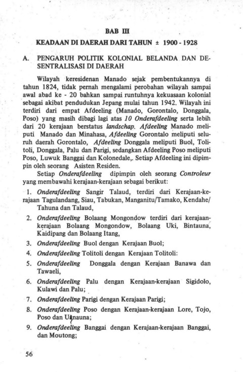 terdiri  dari  em pat  Af deeling  (Manado,  Gorontalo,  Donggala,