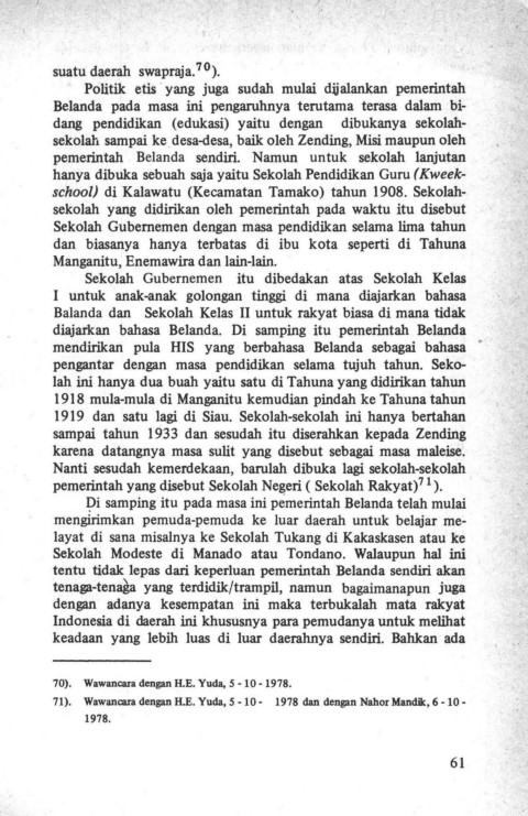71). Wawancara dengan H.E. Yuda, 5 - 10- 1978 dan dengan Nahor Mandilc, 6 - 10 -