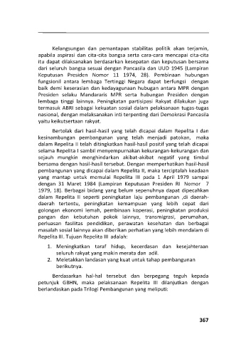 pembangunan yang dicapai dalam Repelita II, maka terciptalah keadaan