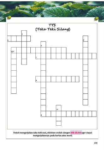 TTS (Teka Teki Silang) 4 6 5 2 3/7 1 9 10 8 Untuk mengerjakan teka teki soal, silahkan unduh dengan klik di sini agar dapat mengerjakannya pada kertas atau word. 44