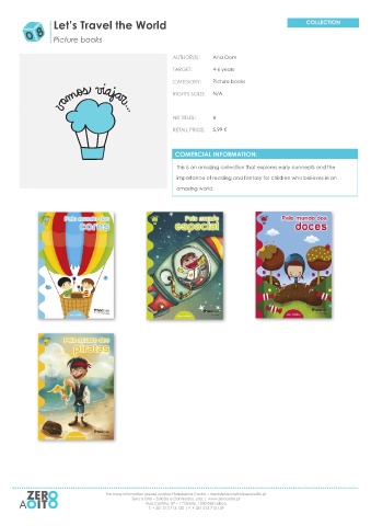 Let’s Travel the World Picture books Ana Oom 4-6 years Picture books N/A 4 5,99 € This is an amazing collection that explores early concepts and the importance of reading and fantasy for children who believes in an amazing world.