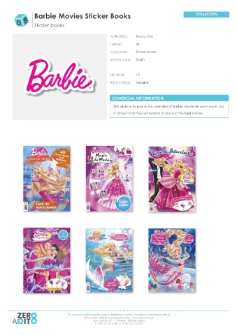 Barbie Movies Sticker Books Sticker books Zero a Oito 4+ Sticker books Spain 10 Variable Girls will love to play in the scenarios of Barbie movies! In each book, lots of stickers that they will beable to place in the right places.