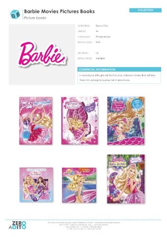 Barbie Movies Pictures Books Picture books Zero a Oito 4+ Picture books N/A 12 Variable In each book, little girls will find the story of Barbie movies that will take them into a magical journey full of adventures.
