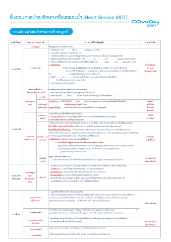 ขั้นตอนการบํารุงรักษาเคร�่องกรองนํ้า (Heart Service MOT)
