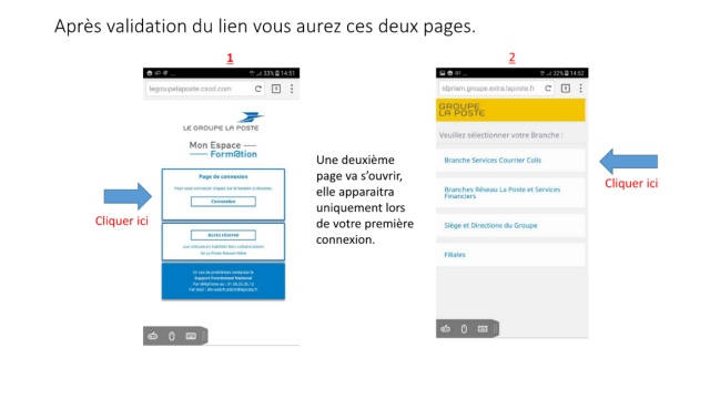 Après validation du lien vous aurez ces deux pages. 1 2 Une deuxième page va s’ouvrir, Cliquer ici elle apparaitra uniquement lors Cliquer ici de votre première connexion.
