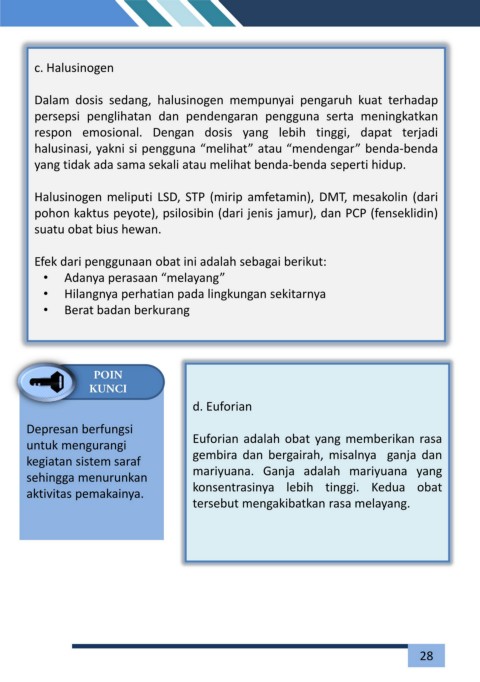 halusinasi, yakni si pengguna “melihat” atau “mendengar” benda-benda