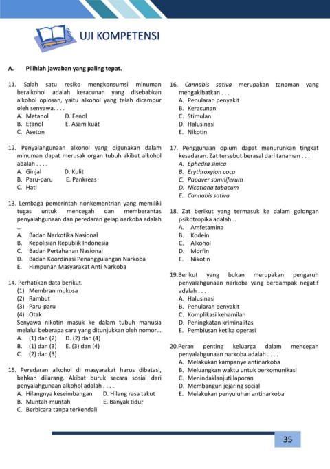11. Salah satu resiko mengkonsumsi minuman 16. Cannabis sativa merupakan tanaman yang