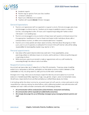 stakeholders at VISS, including students, staff, parents and the wider community.