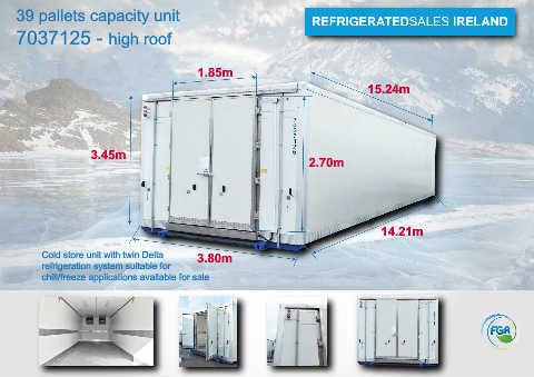 39 pallets capacity unit 7037125 - high roof 1.85m 15.24m 3.45m 2.70m 14.21m Cold store unit with twin Delta 3.80m refrigeration system suitable for chill/freeze applications available for sale