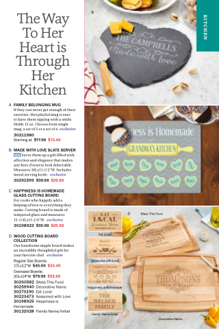 20Lx14"W $79.99 $59.99 30260582 Bless This Food 30259940 Decorative Name 30270190 Eat Local 30223473 Seasoned with Love 30198925 Happiness is