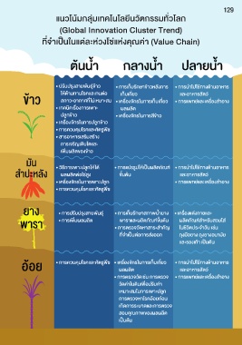 129 แนวโน้มกลุ่มเทคโนโลยีนวัตกรรมทั่วโลก (Global Innovation Cluster Trend) ที่จ�าเป็นในแต่ละห่วงโซ่แห่งคุณค่า (Value Chain)
