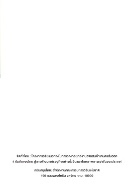 จัดท�ำโดย : โครงกำรวิจัยแนวทำงในกำรวำงกลยุทธ์งำนวิจัยสินค้ำเกษตรส่งออก 4 อันดับของไทย สู่กำรพัฒนำเศรษฐกิจอย่ำงยั่งยืนและศักยภำพกำรแข่งขันของประเทศ สนับสนุนโดย: ส�ำนักงำนคณะกรรมกำรวิจัยแห่งชำติ 196 ถนนพหลโยธิน จตุจักร กทม. 10900