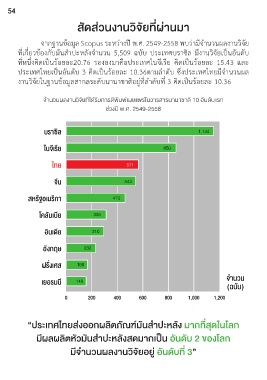 จากฐานข้อมูล Scopus ระหว่างปี พ.ศ. 2549-2558 พบว่ามีจ�านวนผลงานวิจัย