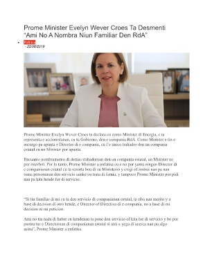 Prome Minister Evelyn Wever Croes Ta Desmenti