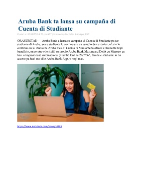 ORANJESTAD – Aruba Bank a lansa su campaña di Cuenta di Studiante pa tur