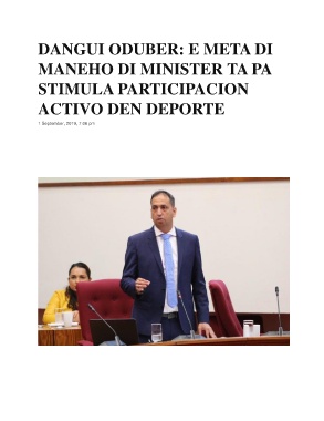 DANGUI ODUBER: E META DI MANEHO DI MINISTER TA PA STIMULA PARTICIPACION ACTIVO DEN DEPORTE 1 September, 2019, 7:06 pm