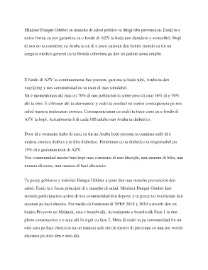 salud. Esaki ta e focus principal di e maneho di salud. Minister Dangui Oduber kier