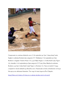 Rockets y pa 5pm Aruba Bank Lady Tigers vs Rockets AA. Pues un total di 5 wega