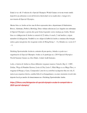 organisacion di Special Olympics Aruba cu lo participa na e 2019 Special Olympics