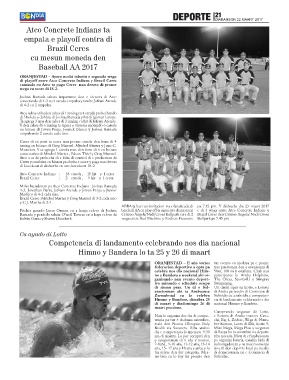 Brazil Ceres : 2 careda , 9 hit y 1 error