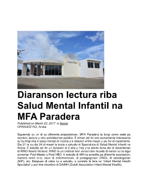 Dia 21 te cu dia 24 di maart ta inicia e estudio di Specialista di Salud Mental Infantil na