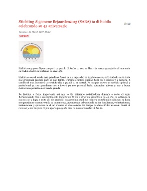 SABA ta orguyoso di por comparti cu pueblo di Aruba cu awe 22 Maart ta marca 45 anja for di momento