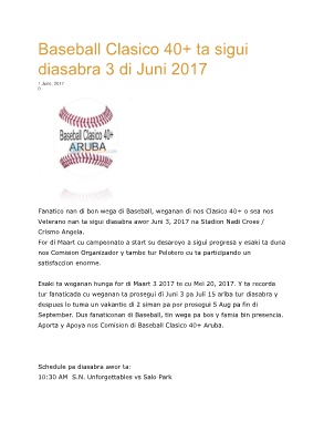Aporta y Apoya nos Comision di Baseball Clasico 40+ Aruba.