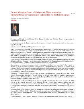Prome Minister a splica cu e limpieza ta sigui na e parti panort di nos isla, dor di ploegnan di DOW,